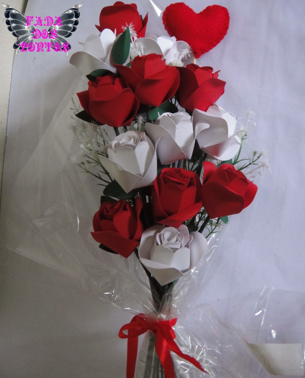 Ramo de Rosas de Papel (rosa - 2 tons e brancas)
